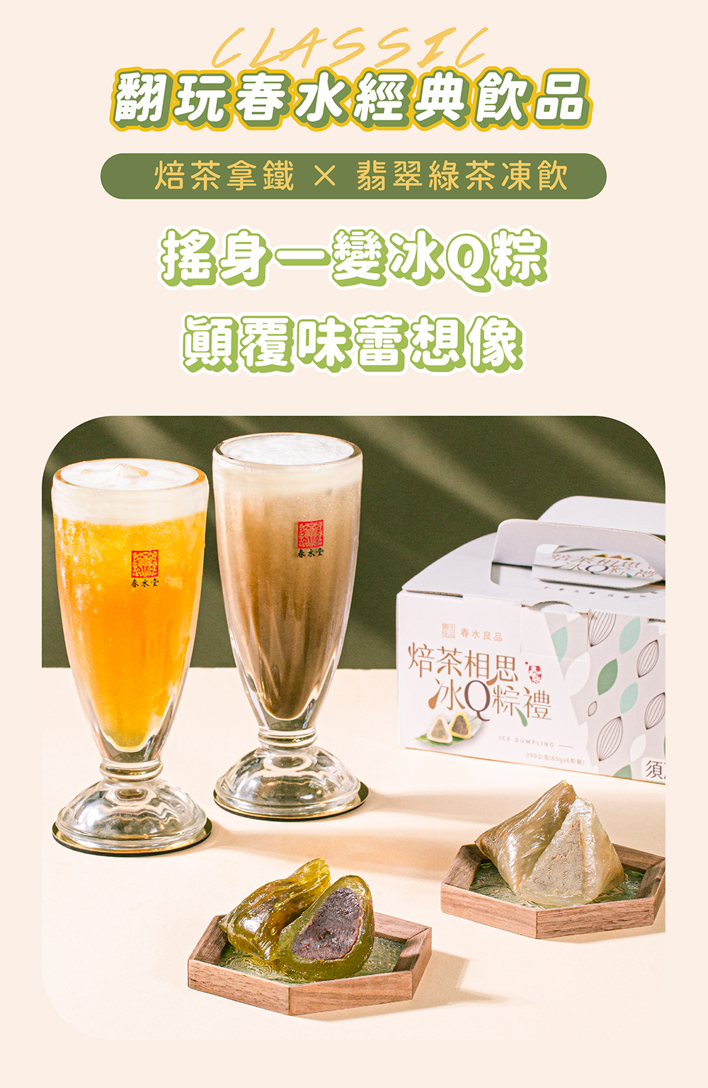 還原春水堂經典飲品的沁涼感,將茶香凝結為晶瑩剔透的Q彈冰粽,一口降溫!