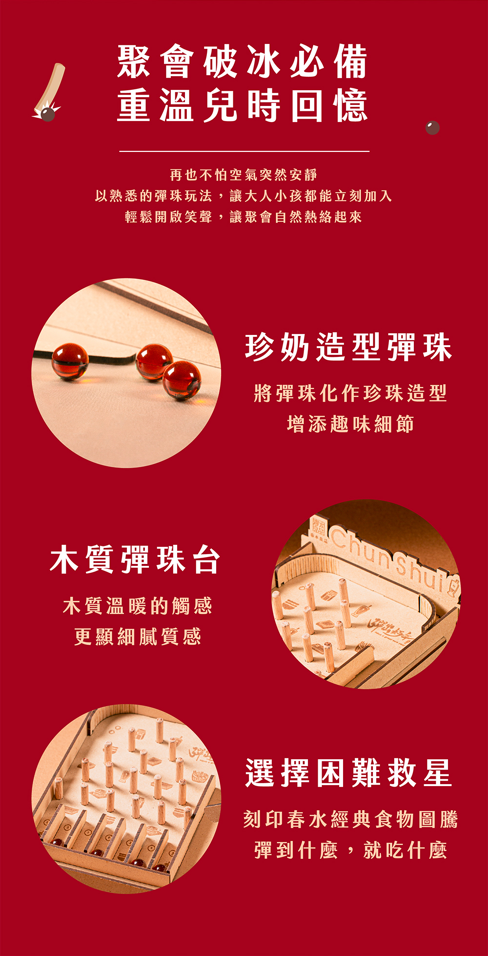 ✔互動彈珠台:木紋質感設計,春節聚會的最佳破冰小物。