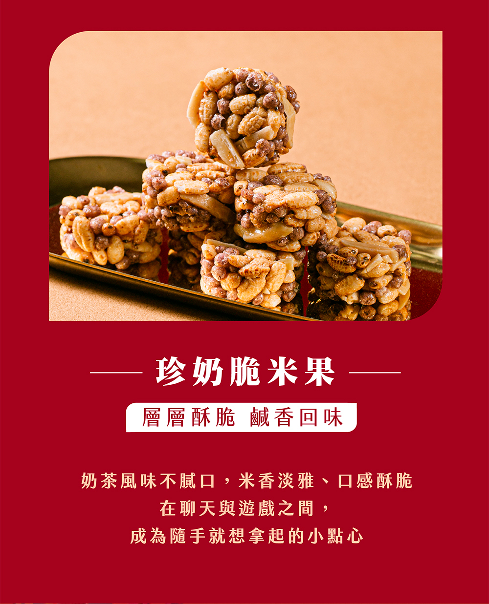 ✔珍奶風味脆米果:米香結合奶茶風味,清爽不甜膩。