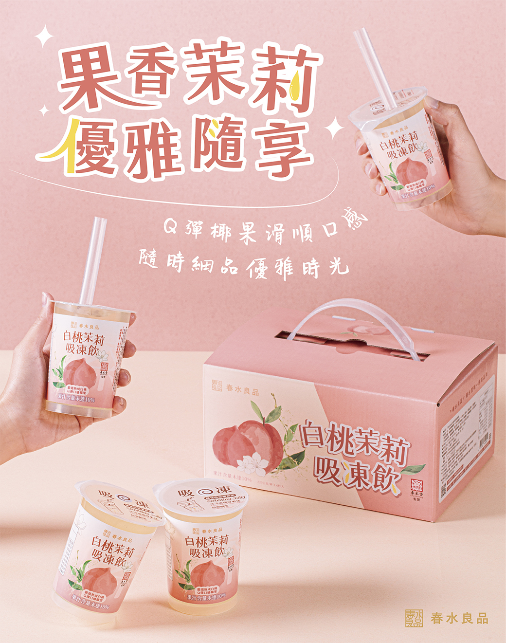 白桃果香交織茉莉茶韻,清甜不膩、香氣細緻。滑順凍飲搭配Q彈椰果,層層口感療癒滿分。